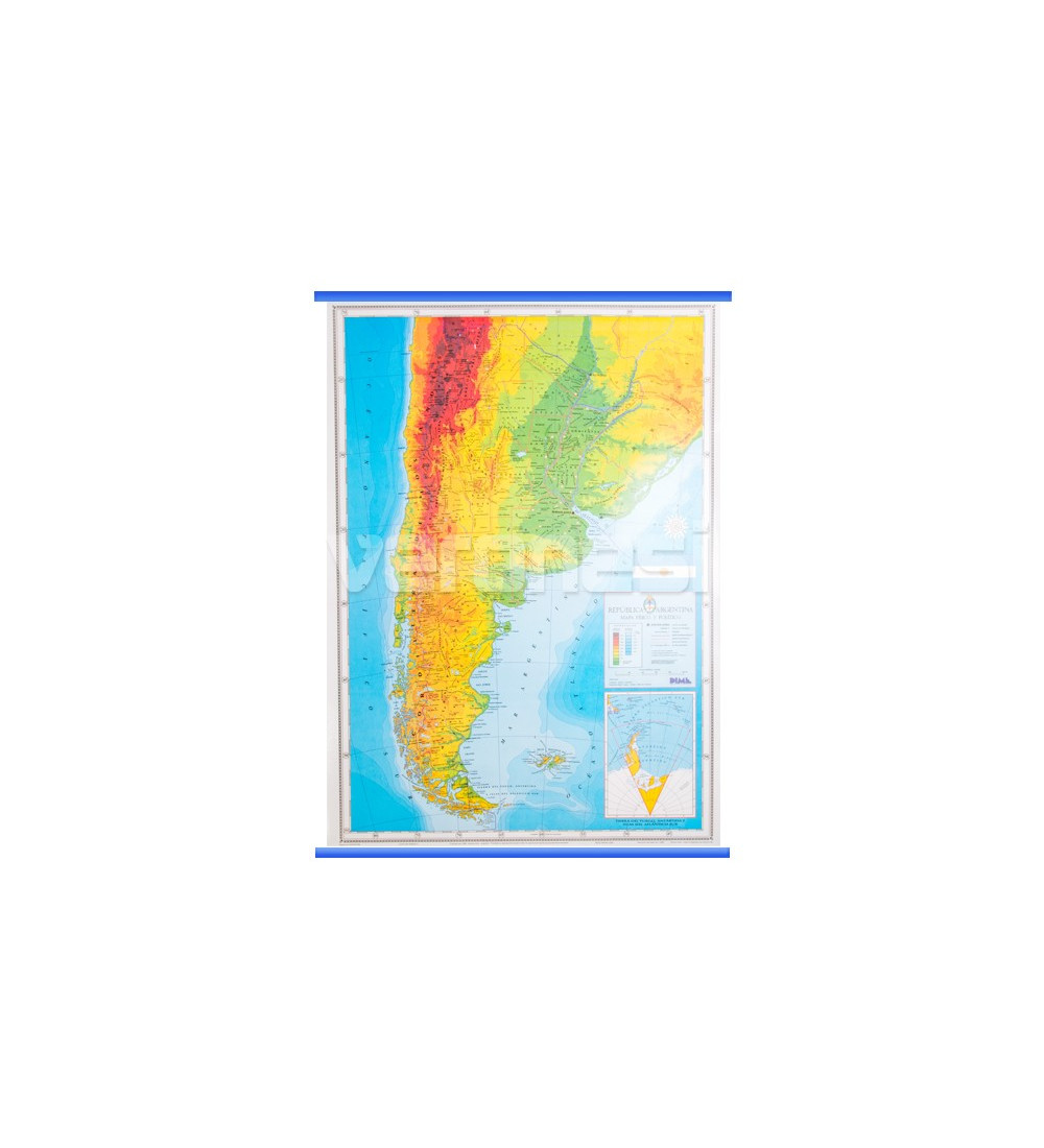 Mapa fisico politico de Argentina para pizarra o pared, material aulico.