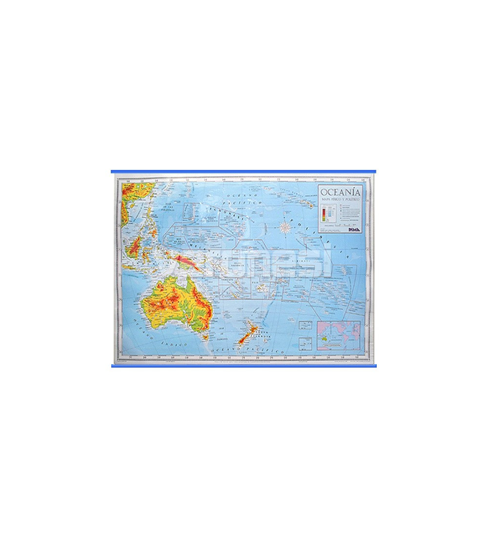 Mapa fisico politico de Oceanía para pizarra o pared, material aulico.