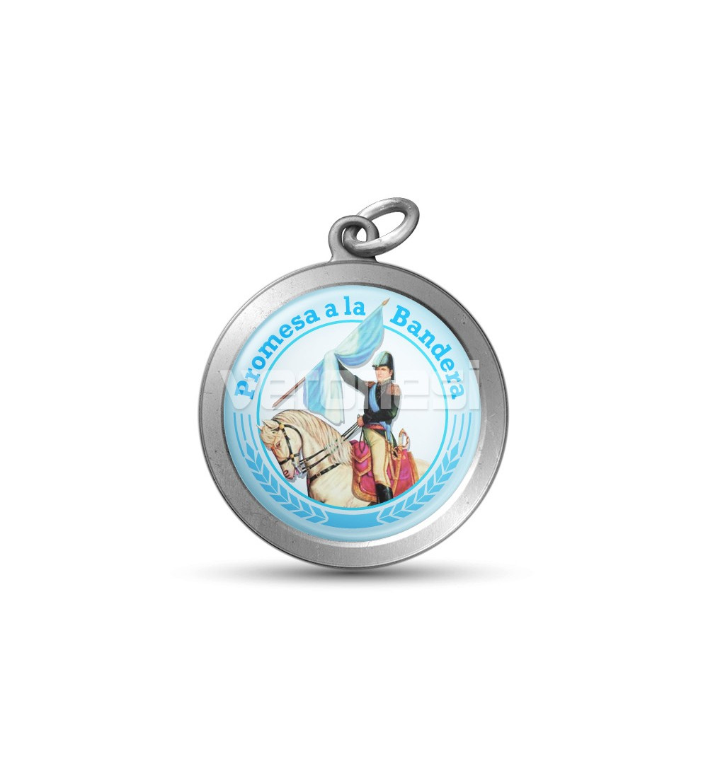 Medalla de promesa a la bandera nacional de simil plata vieja pintada