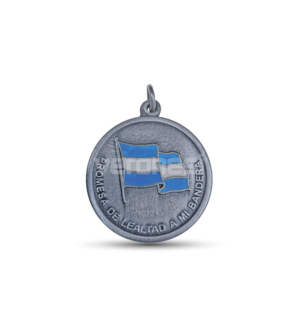 Medalla de promesa a la bandera nacional de simil plata vieja pintada