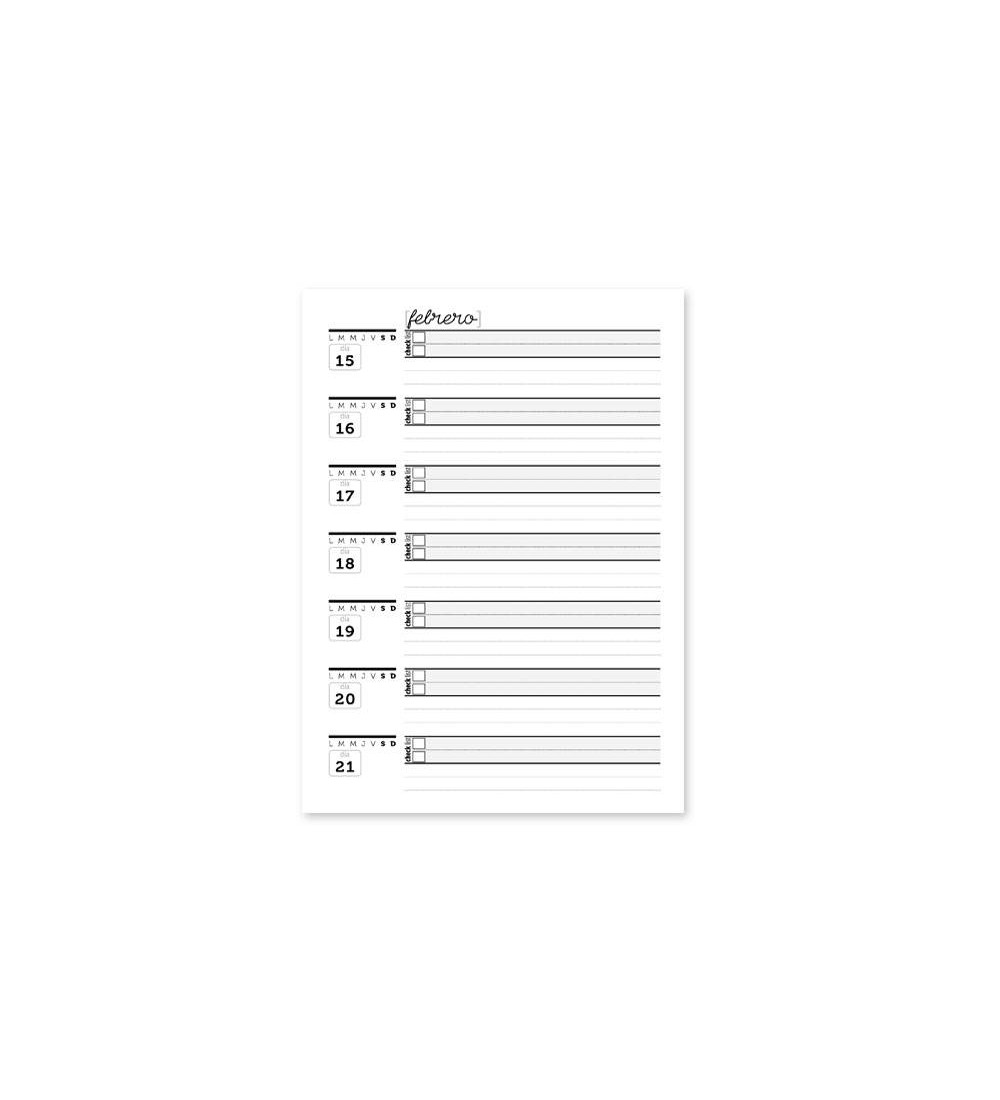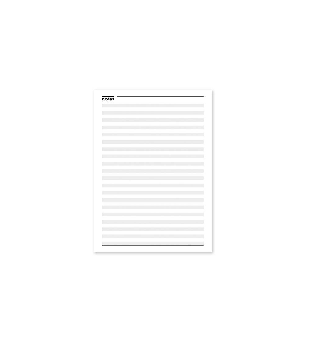 • El interior de la agenda cuenta con 100 hojas en papel obra impresas en tinta negra
