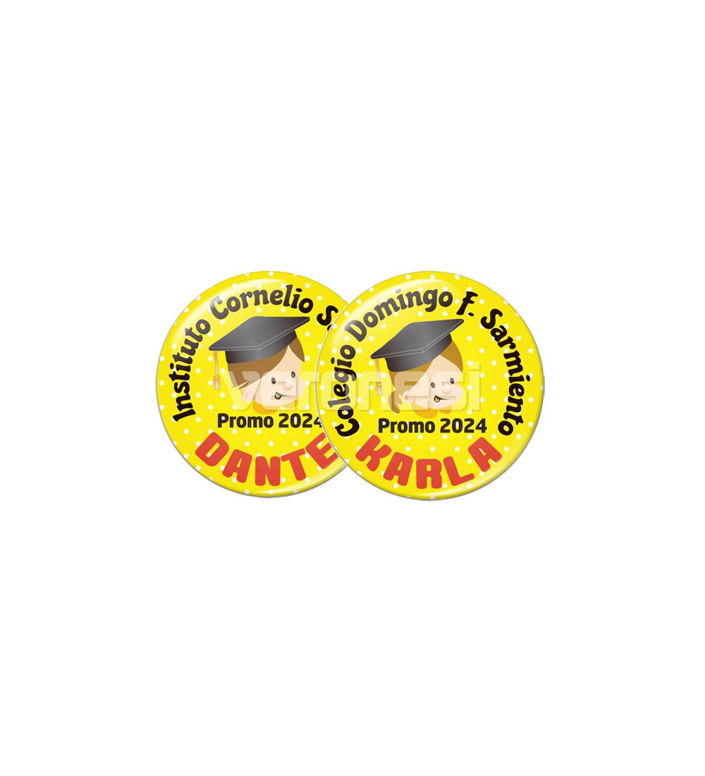 Este artículo corresponde a la personalización del prendedor con los nombres de los alumnos (el texto varía en todos los prendedores)