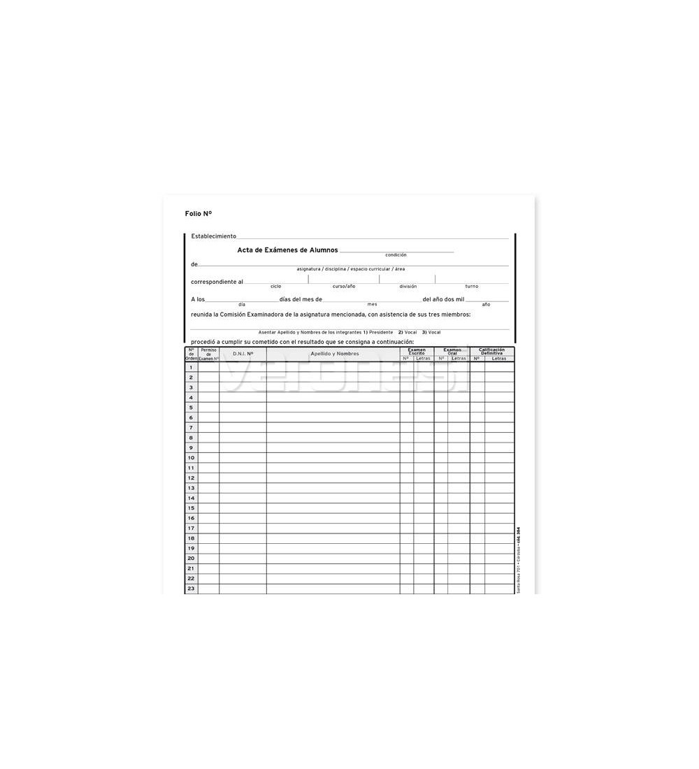 Libro Actas Examen |cód. 384