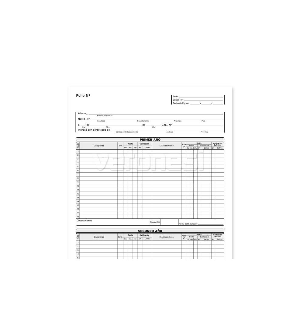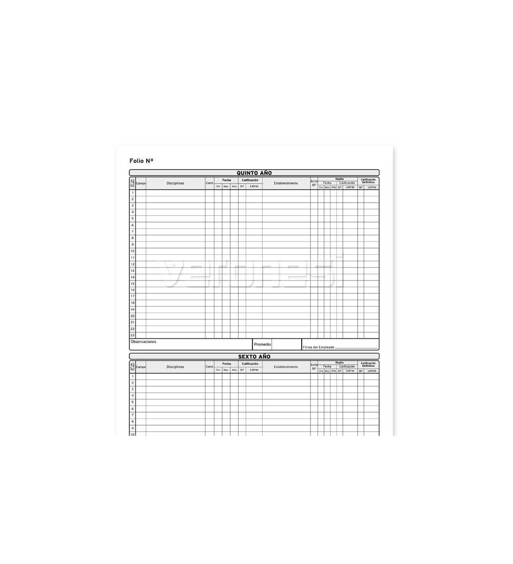 Libro matriz para el registro general de calificaciones