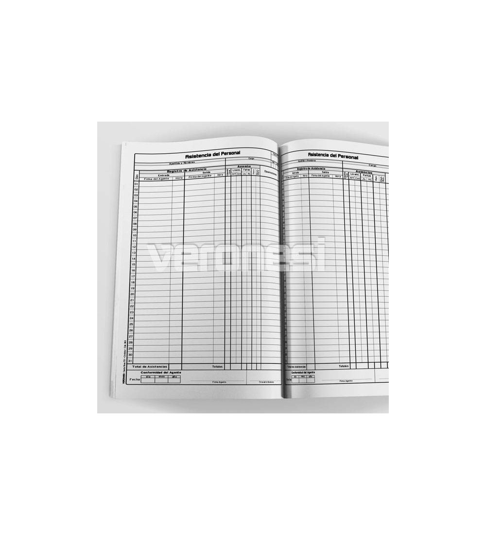 Libro de firmas y asistencia del personal.