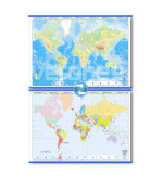 Mapa mudo para marcador Planisferio doble faz para pizarra o pared, material aulico.