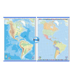 Mapa mudo para marcador de América doble faz para pizarra o pared, material aulico.