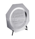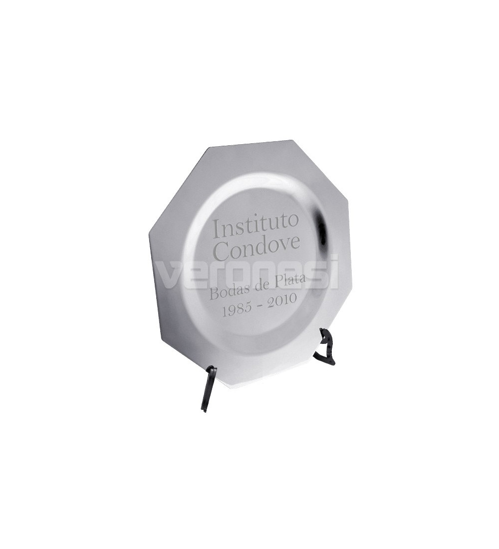 El material del plato octogonal es acero el cual es grabado mediante sistema láser para otorgarle una mayor terminación y calidad.